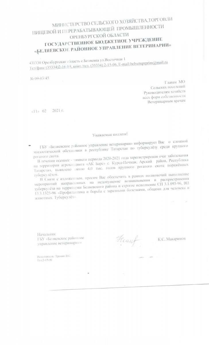 Информация Государственного бюджетного предприятия «Беляевское районное управление ветеринарии»